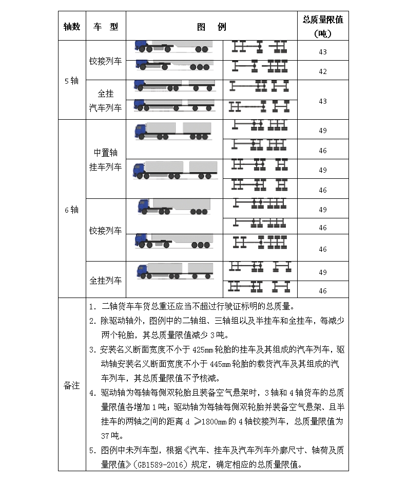公路货运车辆超限超载认定标准(GB1589)