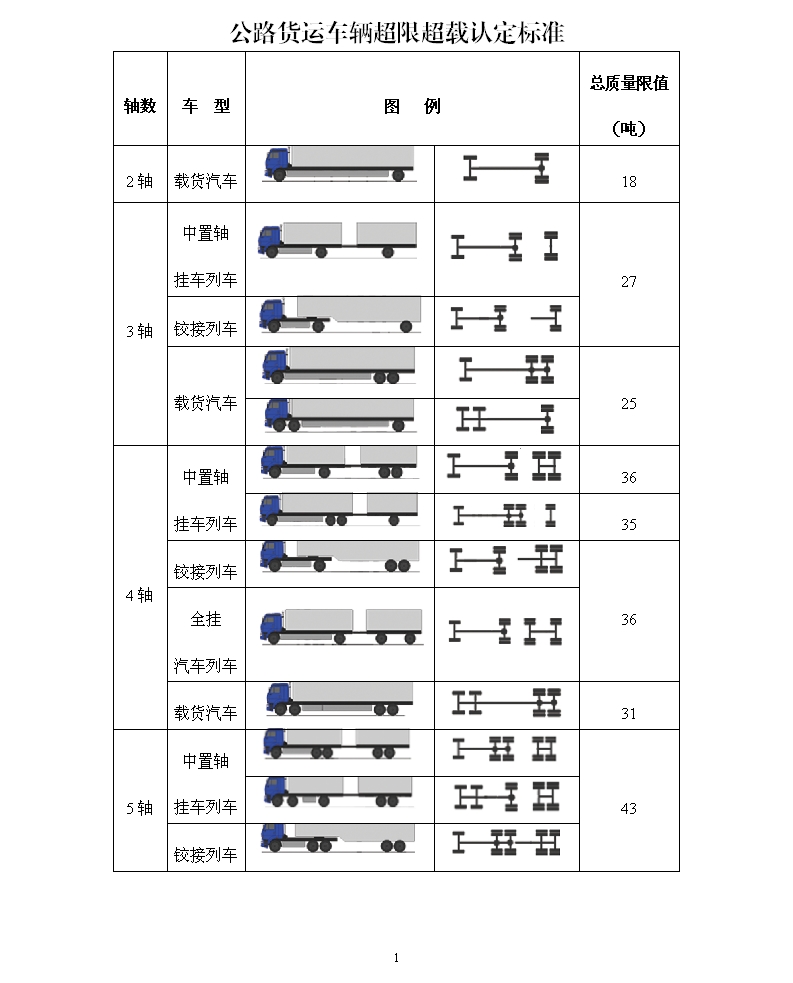 公路货运车辆超限超载认定标准(GB1589)